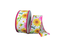 BACKGROUND WHITE WITH PINK & YELLOW DAISIES WIRED EDGE